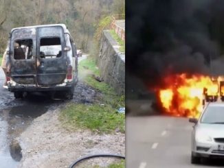 Microbuz cuprins de flăcări pe șoseaua Hunedoara – Teliuc