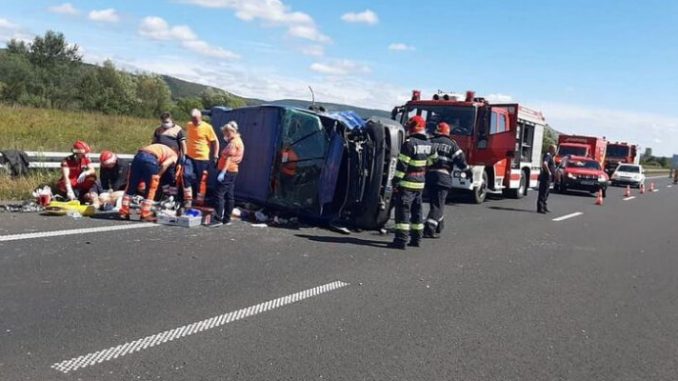 Tragedie pe Autostrada Lugoj – Deva, în zona localității Ilia. „Un cetățean bulgar, în timp ce conducea un autovehicul cu remorca (având 6 pasageri, toți cetățeni bulgari), pe A1, la km 389, din direcția Deva – Nădlac, a pierdut controlul asupra direcției de deplasare, a lovit parapetul metalic din partea dreapta și s-a răsturnat pe partea stângă, ramând pe banda de urgență și parțial pe banda 1. Remorca a fost proiectată la 10 metri după autovehicul, ramând în banda de urgență. În urma accidentului, o pasageră a fost prinsă parțial sub autovehiculul răsturnat. Deși s-au efectuat manevre de resuscitare, aceasta a fost declarată decedată”, a informat IPJ Hunedoara.
