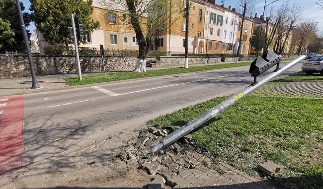 Accident în Hunedoara: „bombardierul șoselelor” a devastat un semafor și a rănit un tânăr