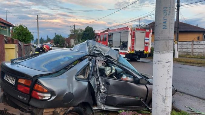 Pompierii deveni au acţionat pentru salvarea unui bărbat de 49 de ani ce se afla la volanul unui autoturism care s-a izbit violent de un stâlp din beton.
