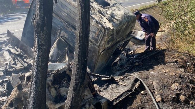 La sosirea echipajelor specializate incendiul se manifesta generalizat, conducatorul auto fiind găsit carbonizat în interiorul cabinei. Autocamionul nu transporta marfă, fiind gol.