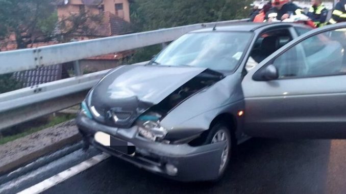 Pompierii militari au intervenit joi seară la un accident rutier petrecut pe Drumul Național 66, în zona Merișor, unde un autoturism a intrat în coliziune cu un parapet.