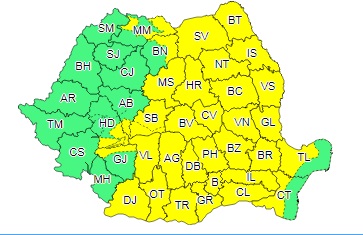 ANM notează că astfel de fenomene se vor semnala și în restul teritoriului, dar pe arii mai restrânse.