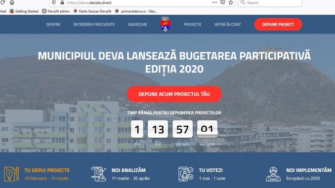Marți, 10 martie, este ultima zi în care locuitorii municipiului Deva mai pot depune, online, proiecte pentru îmbunătățirea vieții în oraș, în cadrul programului de bugetare participativă, lansat de administrația publică locală.