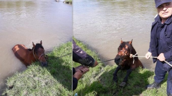 Un cal căzut în râul Mureș în apropierea localității hunedorene Stretea a fost scos la mal de pompierii Gărzii de Intervenţie Dobra.