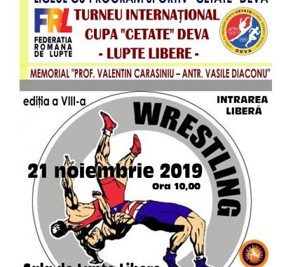 Municipiul Deva va fi gazda Turneului Internaţional de Lupte Libere Cupa ,,Cetate” Deva, Memorial profesor Vasile Carasiniu – antrenor Vasile Diaconu, aflat la a opta ediţie.