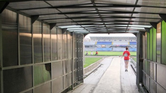 Stadionul Corvinul (actual „Michael Klein”) din Hunedoara a fost construit la începutul anilor ’60, iar în următoarele decenii a fost unul dintre locurile simbol ale municipiului. În anii ’80, arena cu peste 15.000 de locuri se umplea până la refuz la meciurile generației de aur a echipei de fotbal Corvinul Hunedoara, condusă de Mircea Lucescu. Declinul industrial al orașului s-a răsfrânt asupra sportului, iar în ultimii ani stadionul din Hunedoara a rămas un loc pustiu, depășit de vremuri, în așteptarea reconstrucției.