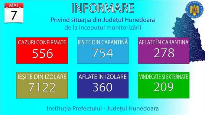 CORONAVIRUS: SITUAŢIA DIN JUDEŢUL HUNEDOARA, 7 MAI
