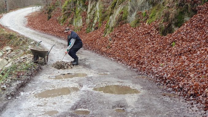 Sătui să mai aștepte intervenția autorităților competente, oamenii dintr-o localitate de munte din județul Hunedoara au decis să ia “taurul de coarne” și să repare, pe propriile lor puteri, drumul pe care trebuie să îl străbată și care este plin de gropi. „Înarmat” cu o roabă și o lopată, unul dintre localnici nu a mai stat pe gânduri și s-a apucat singur de reparat șoseaua, transmițând un mesaj ironic la adresa autorităților.