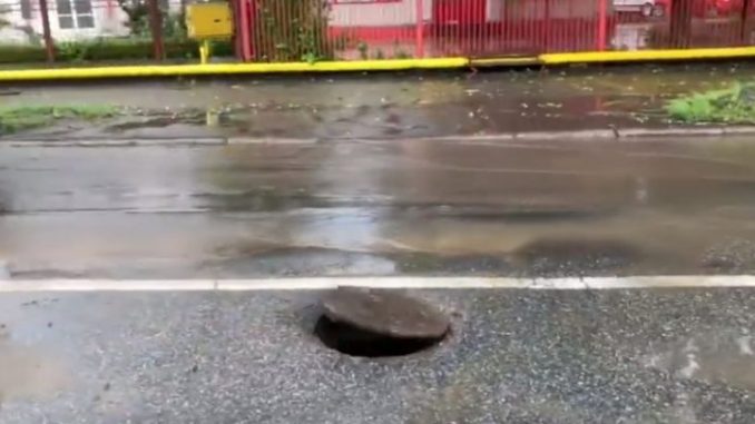 De exemplu, la capătul străzii Sadoveanu înspre 22 Decembrie a fost construit un grătar cu lățime destul de mare. Efectul e că nu mai “scapă” apa pluvială de pe Sadoveanu în 22 Decembrie.