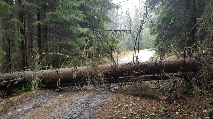 Drumul spre Poiana Pelegii este blocat din cauza unor copaci ce au căzut, în urma vijeliilor din ultima perioadă.