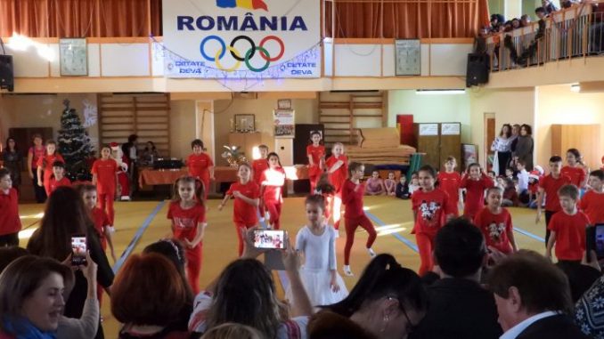 Sute de elevi, profesori și părinți l-au așteptat, nerăbdători, pe Moș Crăciun, în sala de gimnastică aerobică a Școlii Campionilor, cu un spectacol pe măsura talentului lor.