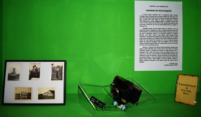 Exponatul lunii februarie 2020 este un aparat de fotografiat cu burduf, AGFA Billy-Record cu lentile Anastigmat Jgestar”, cu diafragma cuprinsă între 1:8.8 și 1:16 mm, fabricat între anii 1933 și 1942. Aparatul este însoțit de două role de film în format lat, dar și de mai multe fotografii (6×9 cm), realizate cu asemenea role. Aceste piese aduc indicii suplimentare despre interesul arătat de hunedoreni artei fotografice.