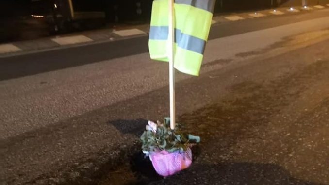 Supărat că și-a spart cauciucul de la mașină după ce a lovit cu roata într-o groapă apărută pe Drumul Național (DN) 7, la intrarea în Deva dinspre Sântuhalm, un șofer a luat atitudine. În semn de protest, tânărul a plantat în groapa respectivă… un ghiveci cu o floare.