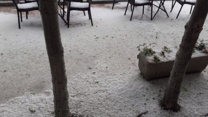Bucățile de grindină, de dimensiunea unor cireșe, au acoperit pământul.