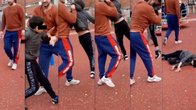 Imaginile publicate pe rețelele de socializare îl arată pe acesta îndreptându-se furios către copilul care se dădea pe un leagăn, iar după ce l-a înjurat, strigându-i „Vino aici, f… morţii mă-tii”, l-a strâns cu mâinile de gât, l-a ridicat deasupra capului său și l-a trântit puternic de caldarâm. Copilul, care este chiar nepot al agresorului, s-a prăbușit cu zgomot, lovindu-se cu capul și cu spatele de tartan, iar după ce a mișcat de câteva ori din mâini și a gemut, a rămas neclintit, leșinând din cauza șocului.