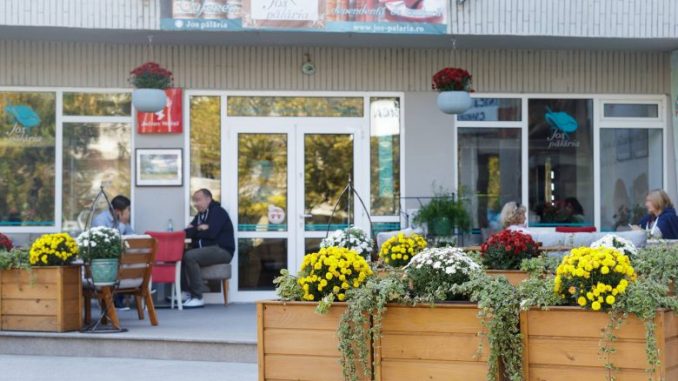 destinate dispuse în exteriorul clădirilor, în aer liber, cu asigurarea unei distanțe de minimum 2 m între mese și participarea a maximum 4 persoane la o masă, dacă sunt din