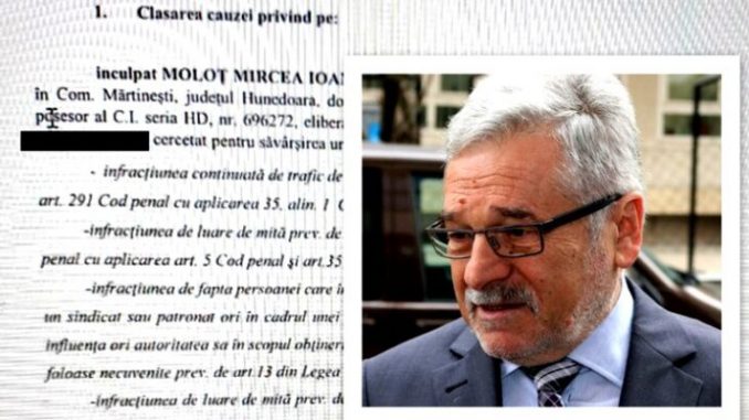 Anchetarea fostului președinte al Consiliului Județean Hunedoara, Mircea Moloț, de către procurorii anticorupție s-a încheiat cu o ordonanță de clasare.