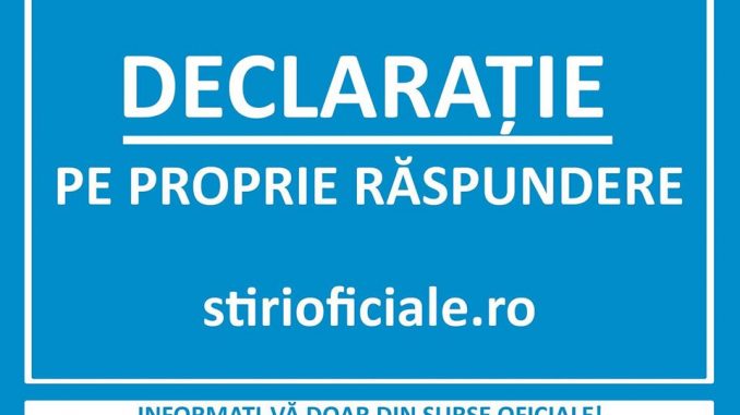 Vă semnalăm actualizarea MODELULUI declarației pe proprie răspundere, accesibil pe pagina https://stirioficiale.ro/, care a fost simplificat în privința datelor care necesită a fi completate.