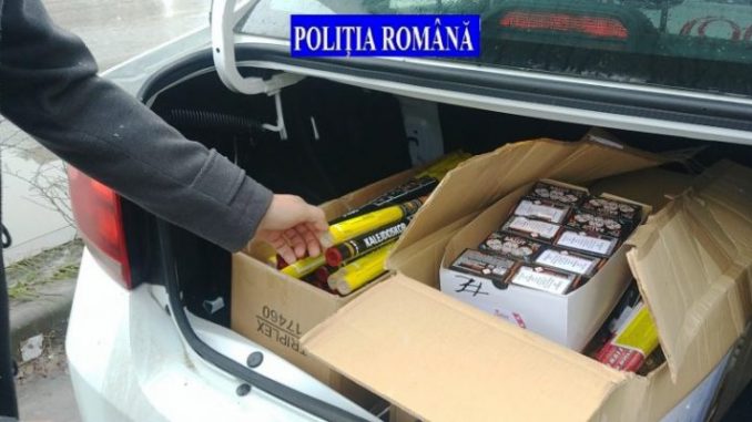 Articole pirotehnice din clase interzise la comercializare către publicul larg, confiscate de către poliţiştii structurii de profil din cadrul I.P.J. Hunedoara, în urma unei acţiuni.
