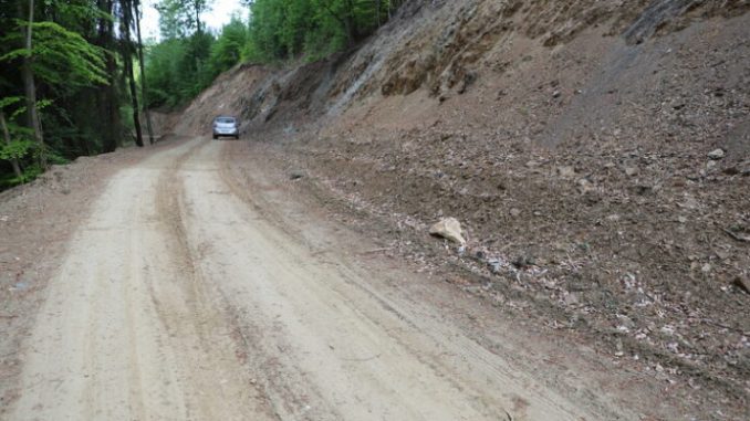 De la intersecția din vârf de munte mai sunt circa trei kilometri până în Vadu Dobrii, pe un traseu prin pădure, pe care șoferii îl pot parcurge cu mare dificultate.