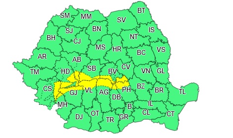 SUDUL JUDEȚULUI HUNEDOARA, SUB COD GALBEN DE NINSORI