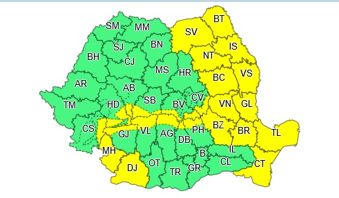 „În Carpații Meridionali și local în Orientali, vor fi intensificări ale vântului, cu viteze la rafală de peste 90…100 km/h. În Moldova, vântul se va intensifica treptat, local și temporar cu rafale de 55…65 km/h, iar în cursul zilei de joi (23 ianuarie), 70…80 km/h.Intensificări ale vântului se vor semnala și în sud-vestul Olteniei în seara de miercuri și în noaptea de miercuri spre joi, iar în nord-estul Munteniei și în Dobrogea îndeosebi joi, unde rafalele vor depăși 55…65 km/h”, arată ANM.