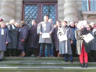 GREFIERII HUNEDORENI AU PROTESTAT, PE TREPTELE TRIBUNALULUI DIN DEVA, DIN PRICINA PENSIILOR SPECIALE
