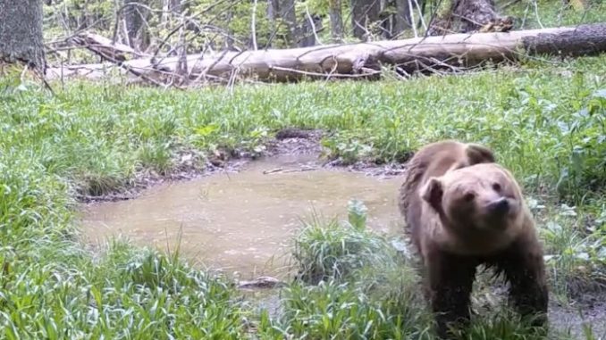 - Un urs aflat la scăldat într-o baltă din Munții Retezat au fost surprins de o cameră de monitorizare a faunei amplasată în zona sălbatică de administrația din Parcul Național Retezat (video: Parcul Național Retezat).